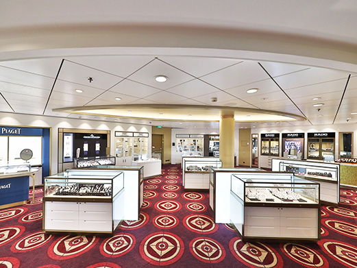 位于270度景观厅入口处,这里早餐供应丰富的麦片牛奶和新鲜水果,午餐提供新鲜色拉、现烤三明治和口味丰富的汤品,选材新鲜,味道可口,您还可以在享受美食的同时欣赏270度景观厅落地玻璃外的海天一色。
